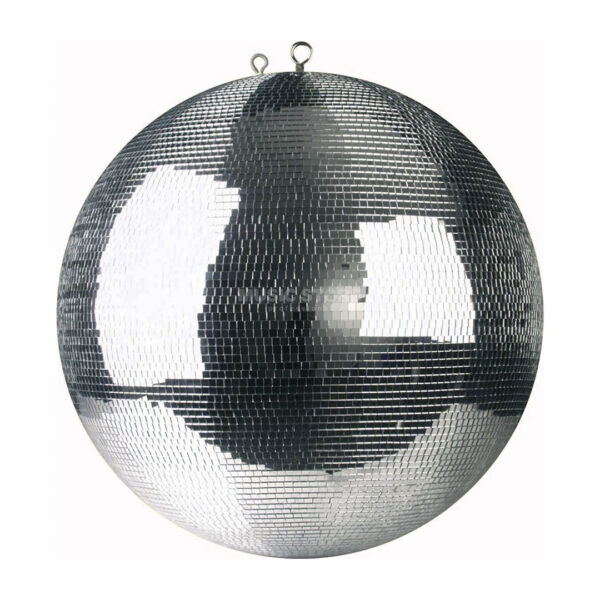 De spiegelbol 50 cm + motor heeft rondom glas facetten van 5 x 5 mm die voor het bekende spiegelbol effect zorgen wanneer er een lamp op schijnt.