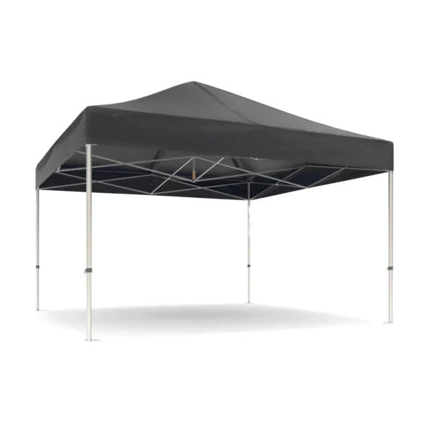 De easy up tent 400 x 400 cm is eenvoudig in enkele minuten op te zetten, is 100% waterdicht en weerbestendig tot windkracht 6 – 7 en heeft zwarte PVC zeildoeken. De easy up tent 400 × 400 cm is gemakkelijk op te zetten en weer in te klappen en geschikt voor zowel binnen als buiten evenementen. De easy up tent wordt daarom vaak ingezet bij o.a. festivals, restaurants, cafe’s, ingangsoverkappingen, beurzen, sportevenementen en feesten, etc. De easy up tent is van hoge kwaliteit, licht van gewicht en heeft een stijlvolle chique uitstraling met een nette afwerking.