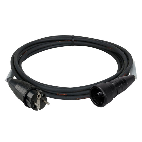 Schuko 230V verlengkabel (20 meter) IP44 is een rubberen stroomkabel die spatwaterdicht (IP44) is. Zo blijft de stroomvoorziening betrouwbaar en veilig tijdens uw evenement.