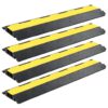 De drempel is gemaakt van rubber, dat lichtgewicht, slijtvast en duurzaam is. De kabeltunnel is gekleurd in fel geel en heeft waarschuwingssymbolen op het oppervlak om hem nog zichtbaarder te maken. Elke kabelbeschermer heeft twee tunnels om je kabels te geleiden en te beschermen en kan een maximaal gewicht van 5 ton weerstaan. De kabels kunnen eenvoudig geplaatst en verwijderd worden door de bovenklep open te klappen. Dankzij het modulaire ontwerp kunnen meerdere drempels verbonden worden om langere snoeren te beschermen.
