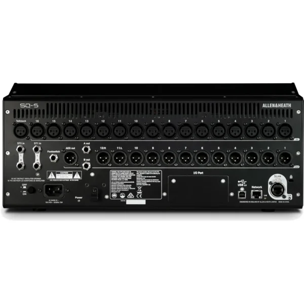 Allen & Heath SQ5 mengtafel heeft een revolutionaire XCVI 96kHz FPGA engine, extra lage latency, 16 onboard preamps, 8 stereo FX engines, 12 stereo mixes.