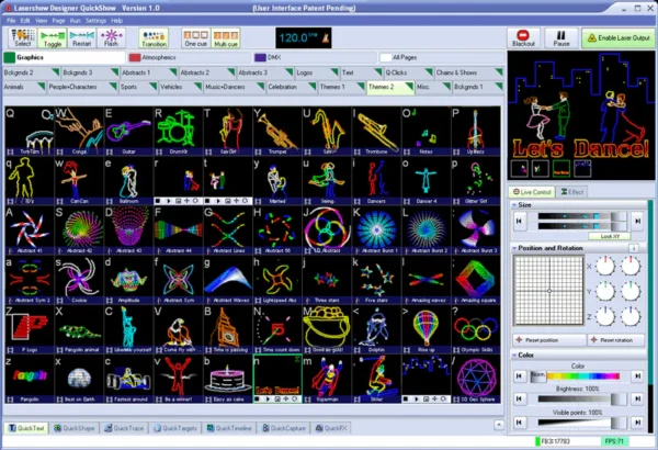 De Pangolin Quickshow 3 laser software heeft al veel (ongeveer 2000) figuren, beams, animaties, effecten etc. voorgeprogrammeerd zodat je ze alleen maar hoeft aan te klikken.