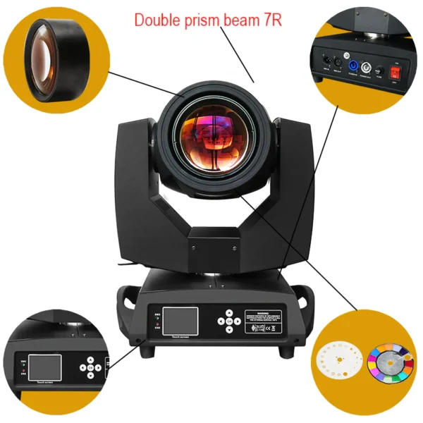 De IM-MH230 – SHARPY BEAM 7R MOVINGHEAD heeft 2 verschillende prisma keuze: 16 en 8, deze zijn ook nog eens te combineren waardoor de beam opgesplitst wordt in meerdere stralen.