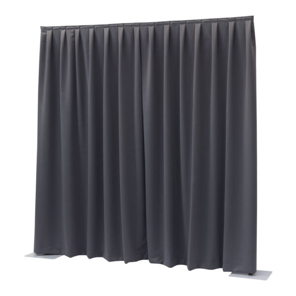 Pipe & Drape set zwart is een compleet gordijn systeem die zich eenvoudig en flexibel laat opzetten en plaatsen om de ruimte sfeervol af te werken. De Pipe & Drape is een populair product en wordt veel ingezet voor diverse (professionele) doeleinden; afzetten van gebieden, sfeervol afwerken, verbergen van materialen etc. Met het verstelbare systeem die zich zowel in de hoogte (staander 180 – 420 cm) als in de breedte (ligger 180 – 300 cm) laat verstellen is het mogelijk om de gewenste hoogte en breedte op maat in te stellen. De Pipe & Drape liggers hebben een klittenbandrand waar de Pipe & Drape doeken (ook voorzien van een klittenbandrand) eenvoudig en snel gemonteerd kunnen worden. De Pipe & Drape is een modulair systeem en daardoor uitbreidbaar. De staanders staan op kleine baseplates waardoor het stevig staat en niet zomaar kan omvallen.