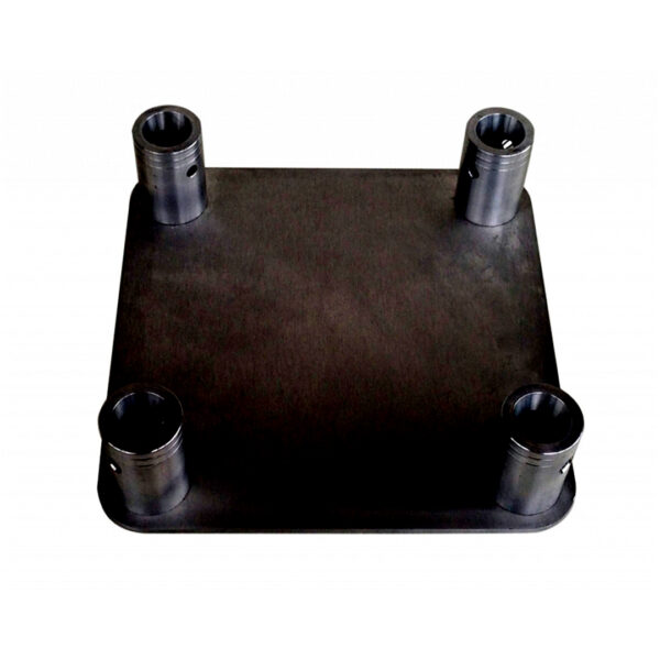 Prolyte H30V Topplate met koppelbus is een aluminium plaat met Prolyte koppelbussen (reeds gemonteerd) die op een Prolyte H30V trussdeel gemonteerd kan worden, op de plaat kan bijvoorbeeld een verlichting armatuur of decor items op geplaatst worden.