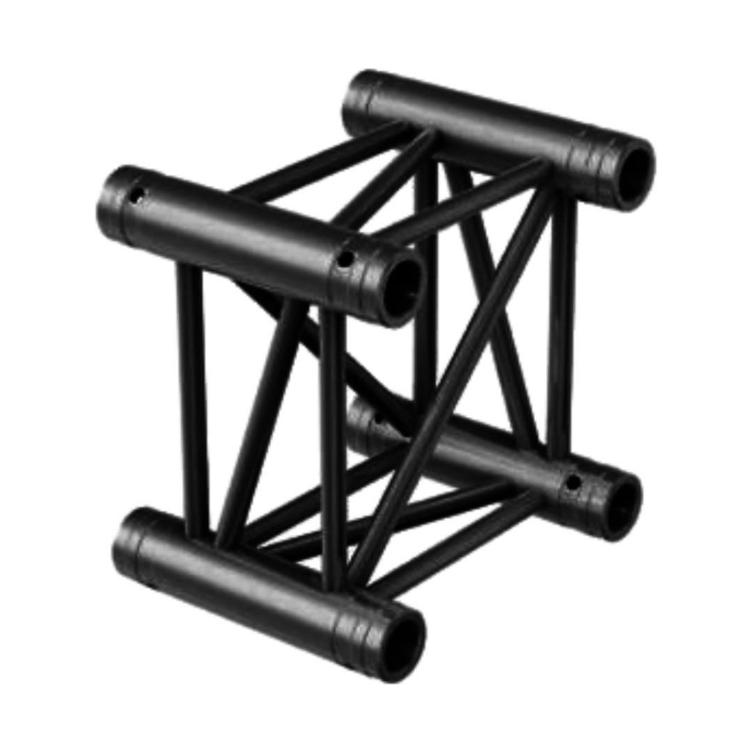 Prolyte H30V-L021 trussdeel heeft een lengte van 21 cm in de kleur (gepantserd) zwart. De H30 serie truss is opgebouwd uit hoofdliggers (48 x 3 mm) en diagonale liggers (16 x 2 mm). Uitgerust met het CCS6 conische koppelingssysteem is de H30 truss snel en eenvoudig te monteren. De Prolyte truss heeft een speciale pantsercoating wat de lak extra beschermt tegen stoten en krasjes. De matzwarte fijn structuur biedt een road-ready afwerking met een luxe uitstraling.